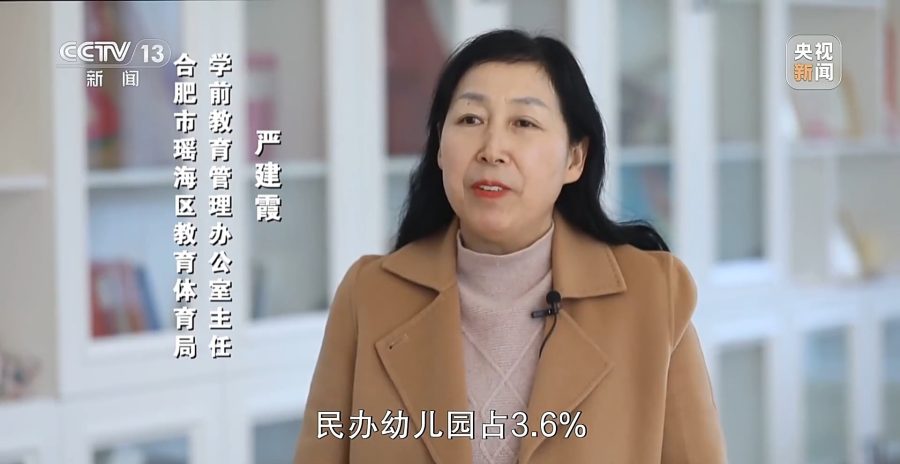 合肥市瑶海区教育体育局学前教育管理办公室主任 严建霞:中央是按照保教费的60%拨付,安徽省也出台了实施方案,如果是省级办的公办幼儿园的资金都由省级来承担,民办幼儿园省级财政占28%,市级资金民办幼儿园占3.6%,区级财政民办幼儿园占8.4%。这样通过中央、省、市、区四级资金完成了免费大班教育的经费保障。
