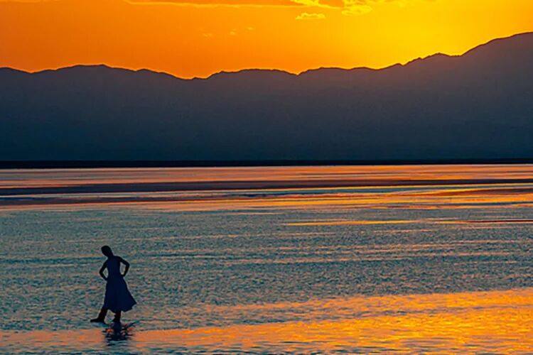 2025年8月10日,茶卡盐湖落日余晖。(视觉中国/图)