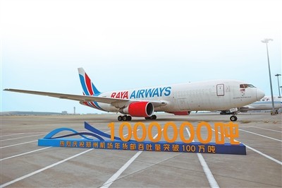 12月21日,随着马来西亚瑞亚航空一架全货机平稳落地,郑州机场年货邮吞吐量首次突破100万吨。记者 孔昊 摄