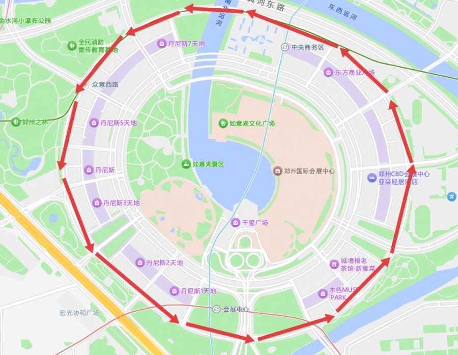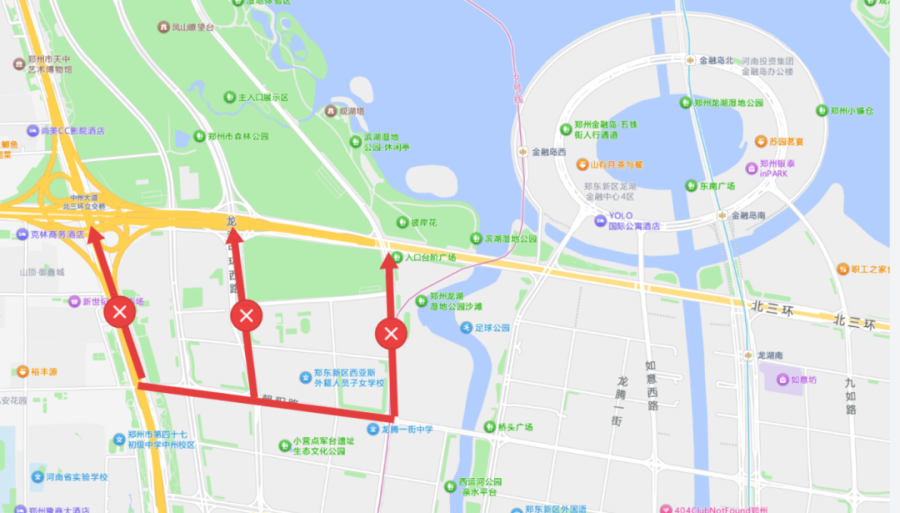 2、同一时段,根据郑东新区CBD区域的交通流量,适时对中州大道(不含)以东,黄河东路和黄河南路(不含)以南、以西,金水东路(不含)以北的合围区域采取车辆“只出不进”的疏导措施。