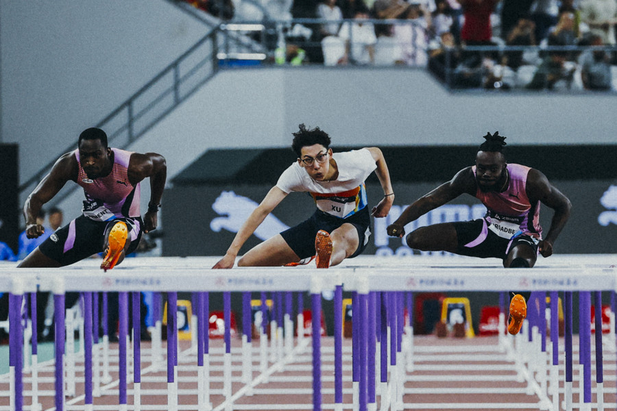 徐卓一在110米栏比赛中