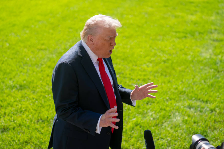 2025年10月5日,在美国首都华盛顿,美国总统特朗普回答记者提问。新华社记者 胡友松 摄