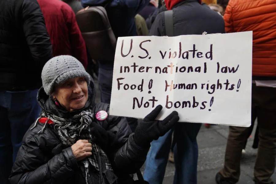 1月3日,近千名民众在美国纽约举行集会游行,抗议美国对委内瑞拉实施军事打击。