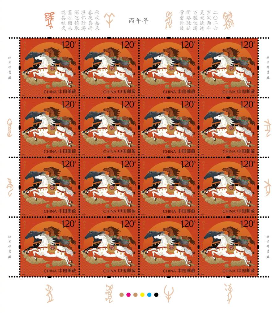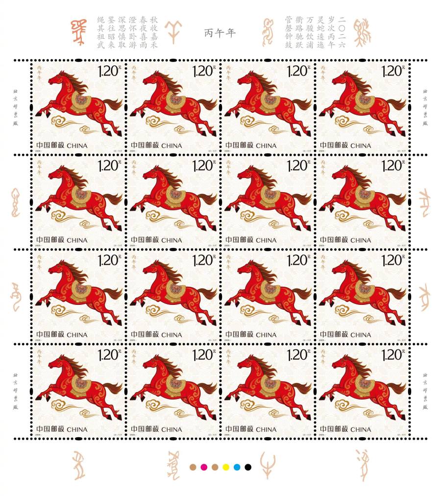 据了解,中国邮政此次发行的《丙午年》特种邮票一套两枚,全套邮票面值2.40元,是中国生肖邮票第四轮中的第十一套,设计者为王红卫、赵恩重。
