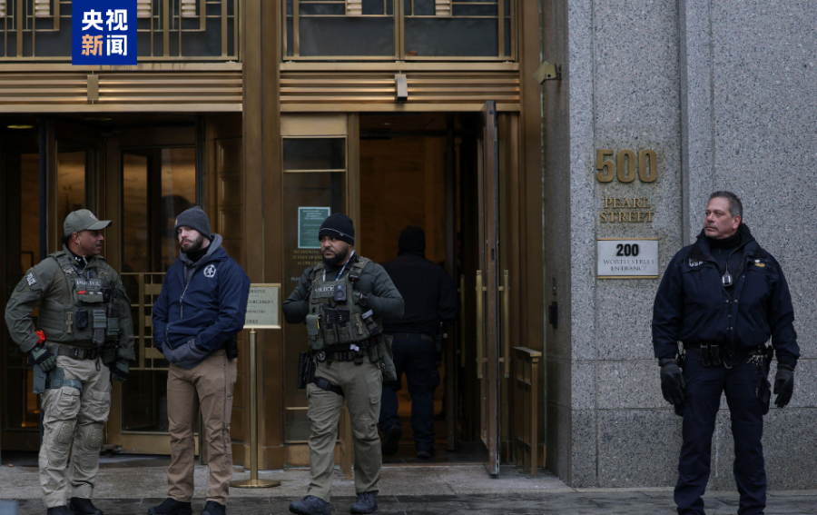 在当天庭审开始前,美国纽约南区联邦地区法院外已聚集大批民众,现场气氛紧张。