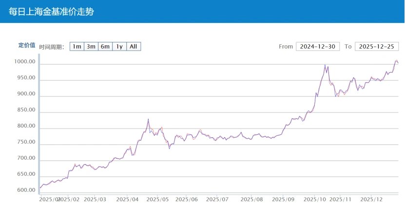 这个讨论的背后,是黄金几乎无休无止地涨价。2025年以来,黄金的价格一路飙升,在年底前突破4500美元/盎司(约3.16万元人民币),创下历史新高,年内涨幅超过70%。相应地,国内首饰金价也水涨船高至1400元/克。