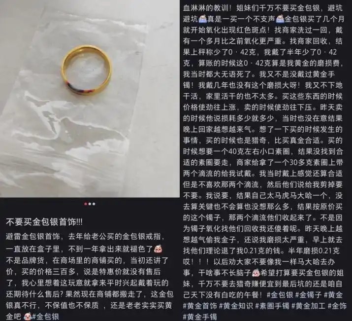 既保不了质也保不了量的金包银,也只能撑撑面子了。(图/小红书截图)