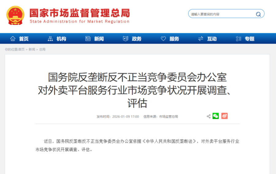 对外卖平台开展调查、评估,美团淘宝闪购京东表态配合