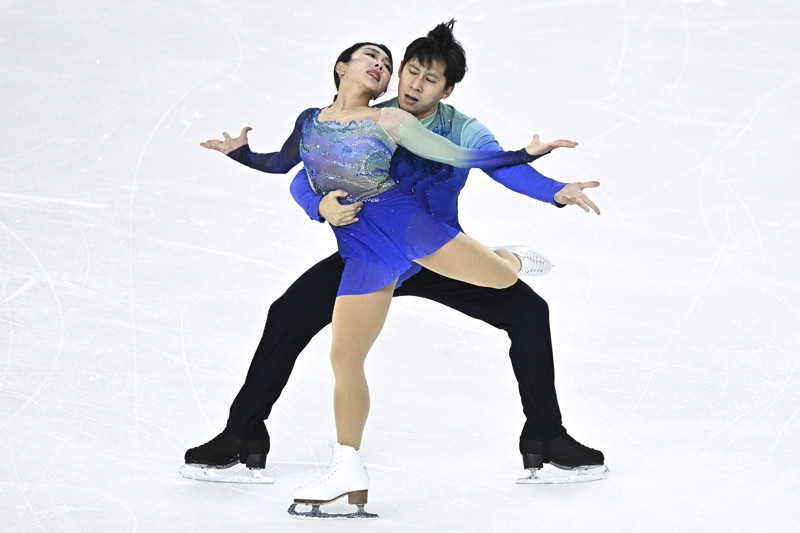 新华社照片,哈尔滨,2025年12月27日,隋文静(前)/韩聪在双人滑自由滑比赛中。他们获得双人滑项目冠军。2025/2026赛季全国花样滑冰锦标赛双人滑比赛在哈尔滨落幕。新华社记者 张涛 摄