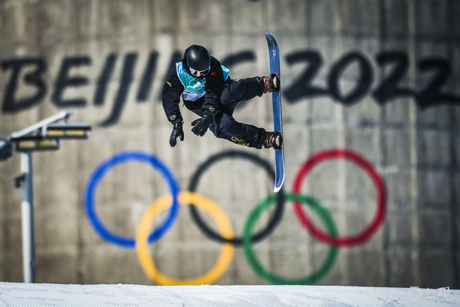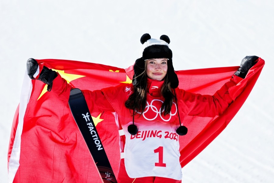 谷爱凌夺冠冬奥会自由式滑雪女子U型场地技巧决赛。新民晚报记者 李铭珅 摄