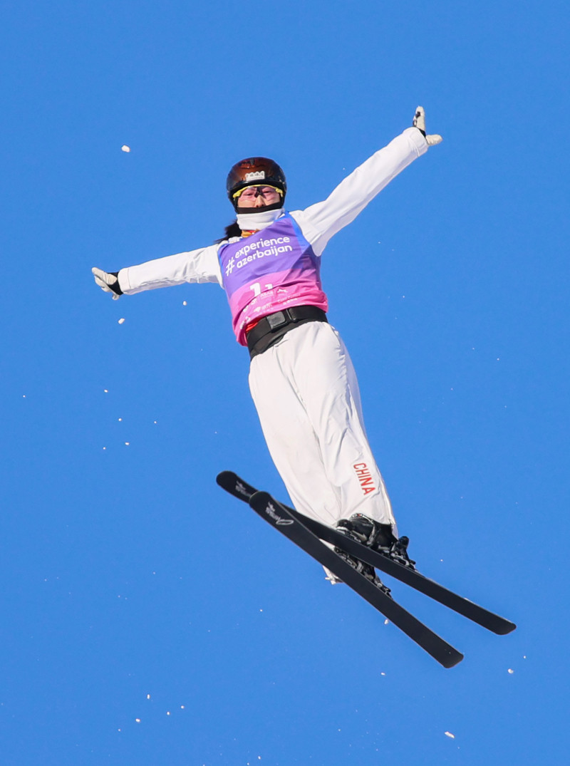 新华社照片,张家口(河北),2025年12月21日,中国一队选手徐梦桃在决赛中。最终,由徐梦桃、李天马、齐广璞组成的中国一队获得冠军。当日,国际雪联自由式滑雪空中技巧世界杯(云顶站)混合团体项目比赛在河北省张家口市崇礼区云顶滑雪场进行。新华社发(武殿森 摄)
