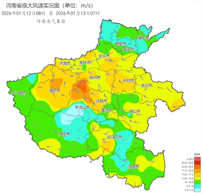 来源:河南省气象台2026年1月13日12时预报