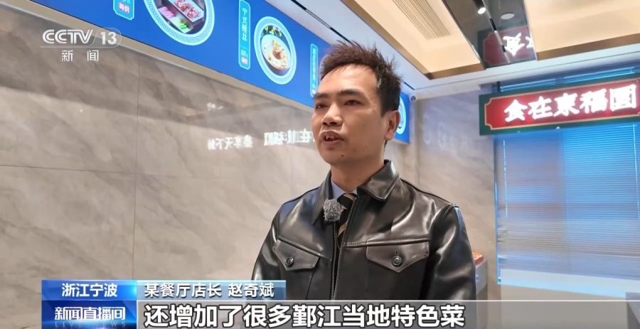 某餐厅店长 赵奇斌:不光有常规的海鲜,还增加了很多鄞江当地的特色菜。