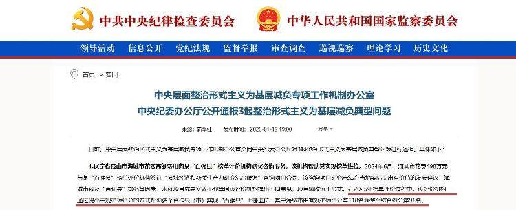 据新华社消息,日前,中央层面通报3起整治形式主义为基层减负典型问题。其中披露,2024年6月,辽宁省海城市花费498万元与榜单评价机构“赛迪顾问”签订合同。在2025年榜单评价过程中,该评价机构通过提高主观指标得分的方式帮助多个合作县(市)实现“百强县”上榜进位,其中海城市由客观指标得分第118名调整至综合得分第91名。这一“荣誉”还被写进了海城市2025年政府工作报告。