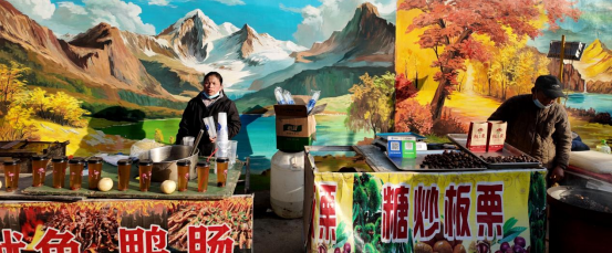 提前嗅到商机的摊主在天安门墙绘旁摆摊10来天,谈起选址一脸得意:“没火的时候我就来了,这儿位置好、人流量大,比其他地方卖得多多了。”