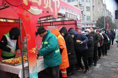 武状元功夫炒鸡店的爱心派送别具特色,负责人笑着介绍:“平时主打功夫炒鸡,今天换种方式送温暖。不仅有热粥,还搭配了自家腌制的爽口小菜,就是想让大家吃得舒心暖胃。”看到老顾客专程赶来领粥,更坚定了企业持续参与公益的决心。 嵩山高记烧饼与中岳高记烧饼的摊位前更是热闹,刚出炉的烧饼带着浓郁麦香,与热粥堪称绝配。“凌晨就起身准备,一边烤烧饼一边熬粥,就想让大家既能喝到软糯的粥,又能吃上热乎的烧饼。”中岳高记烧饼负责人一边递餐一边说道,传统小吃与爱心公益的结合,让腊八节更具烟火气。