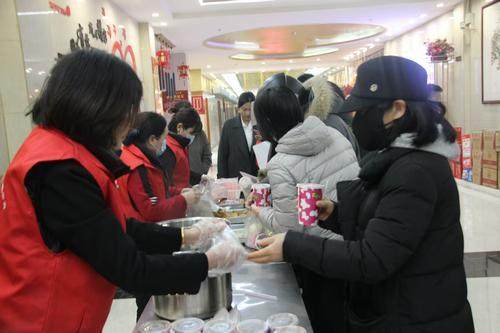 在豫丰汇·河南名菜楼门前,保温桶里的八宝粥冒着腾腾热气,旁边整齐码放着手工馍、爽口小菜与新鲜鸡蛋,工作人员正有条不紊地为市民打包。“公司下辖的5个店铺今天共准备了4000多份爱心粥,就是想让更多人共享节日温暖。”该店负责人的话语里满是诚意。不远处的喜圆酒店门前,经理张晓丽带领团队主动上前递送热粥与食材,热情的笑容与贴心的服务,让清冷的清晨多了几分温情。