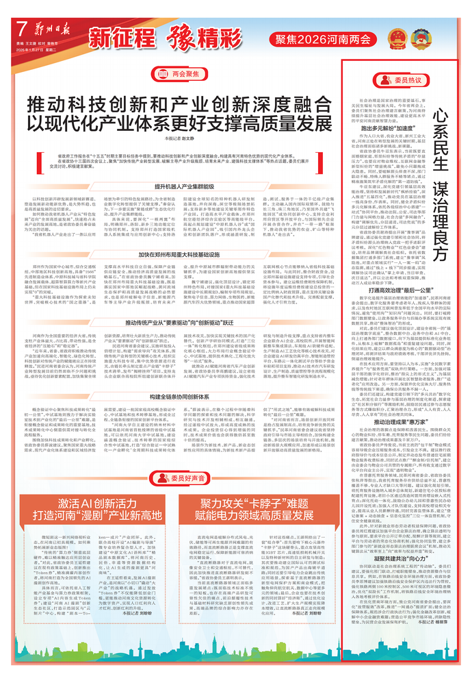 社会治理是国家治理的重要基石,事关民生福祉与发展大局。今年省两会上,委员们聚焦社会治理建言献策,为河南持续提升基层社会治理效能、建设更高水平的平安河南贡献智慧力量。