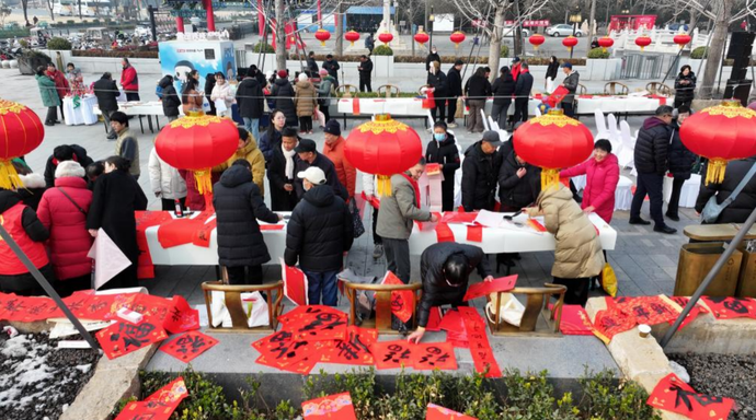 开笔仪式上,与会代表和艺术家共同挥毫泼墨,写下“燃春 跃马新程”六字斗方,正式拉开春节文艺惠民系列活动的大幕。随后,“亳都送福”活动暖心上线,工作人员化身“送福使者”,为八家商户代表上门送春联、拍全家福,把福气和年味送到家门口。现场还同步开展写春联、非遗工艺展示等互动活动,郑州市摄影家协会的摄影师们用镜头定格群众的幸福笑脸,把浓浓的年味传递到每一个角落。