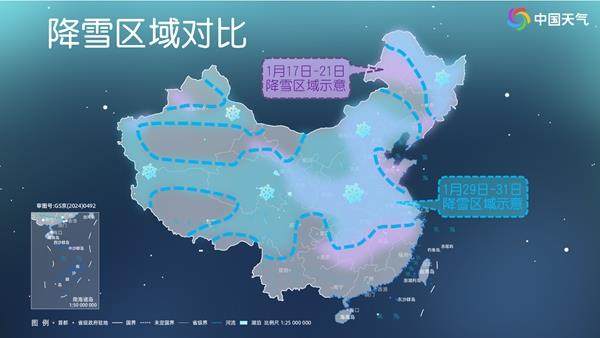 对比此次过程和上轮寒潮带来的雨雪过程,降雪核心区多有重叠。强降雪中心仍集中在河南、山西南部、湖北西部、陕西等地,其中29日,陕西东南部、河南中西部一带可达中到大雪量级、局地暴雪。