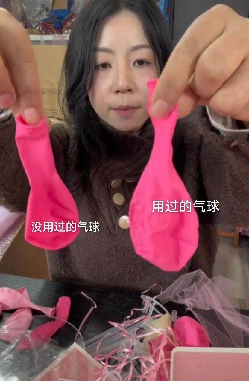 王女士吐槽气球等装饰品被用后退货。网络视频截图