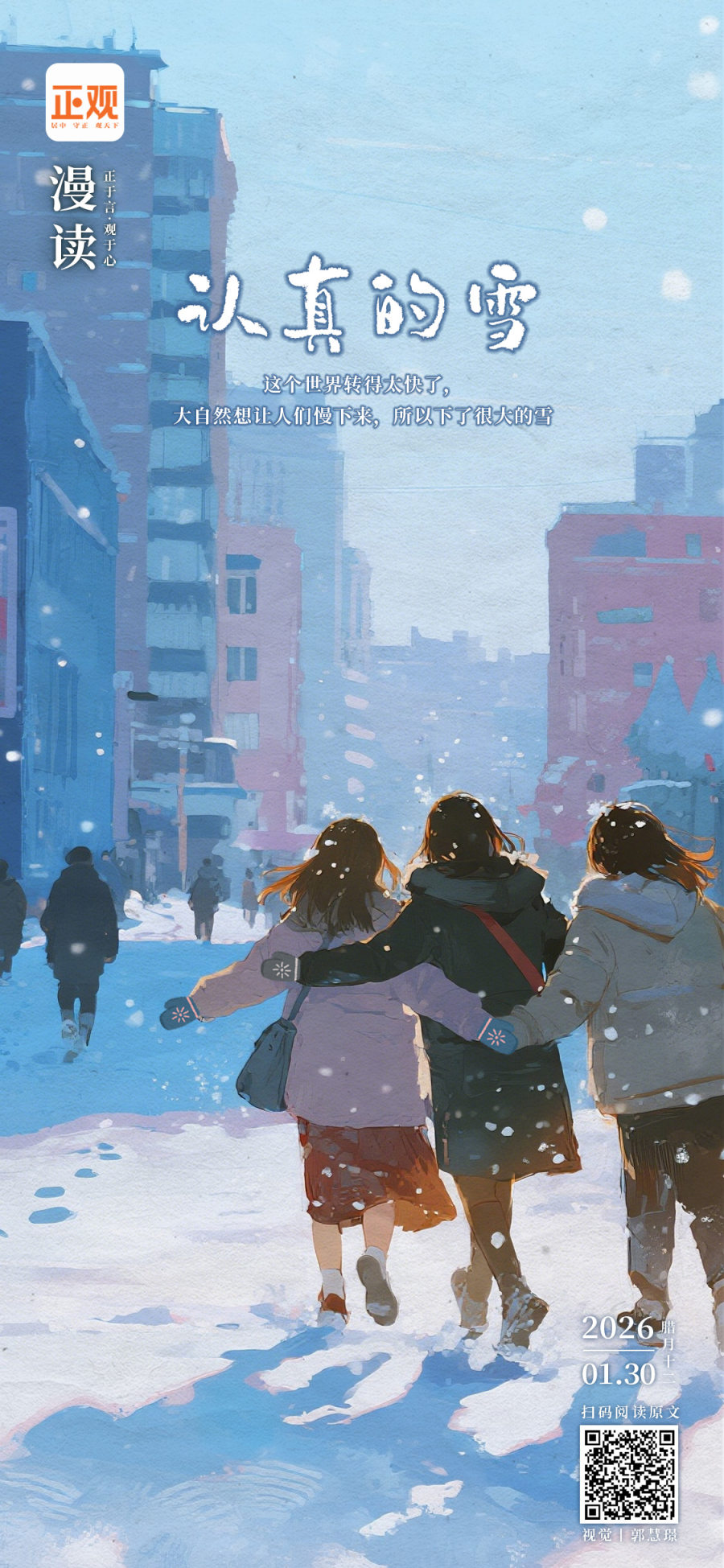 离开时,雪还在下。我的脚印很快会被新的雪覆盖,袖口那片晶莹剔透的六边形小可爱也早已了无痕迹。但我心里是满的。这个冬天的第三场雪告诉我:所有从天而降的诗意,都是为了渗入泥土,去滋养一个真实的春天。而每一个在雪中驻足过的普通人,他的肩上,他的心里,都发着光。
