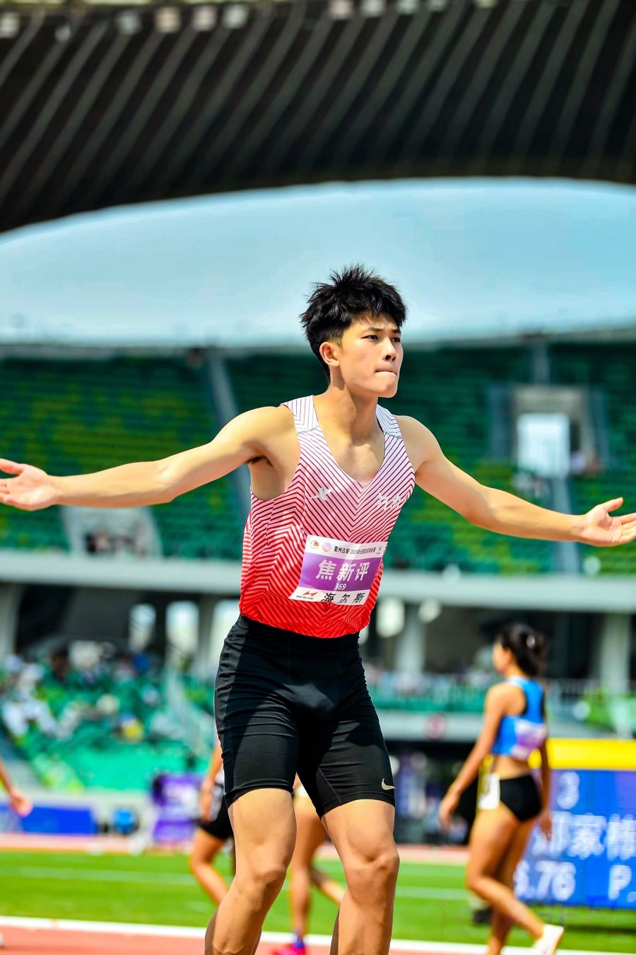 出生于2002年的焦新评同样也是一位颇具实力的选手。2022年入选国家队跳跃项目集训队,备战世锦赛、亚运会等国际赛事;2019年摘得第二届青年运动会体校乙组男子三级跳远冠军;2022年全国田径大奖赛黄石站跳出16.64米的个人最佳成绩获三级跳远亚军,跳远也刷新PB至7.76米;2023年,焦新评迎来赛场高光时刻,拿下全国室内田径邀请赛首站跳远、三级跳远双料冠军,第三站再夺三级跳远冠军;2025年全国田径大奖赛第六站斩获男子三级跳远冠军。