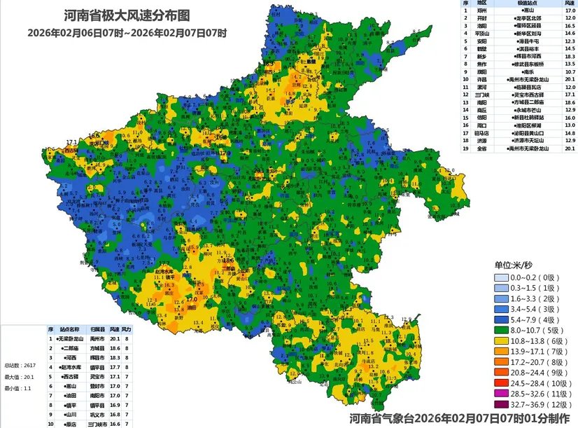 昨天早上到今晨,我省北部、西北部、南部出现6到7级大风,局地8级。