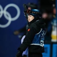 2月7日,苏翊鸣在第三跳后。新华社记者 胡超 摄