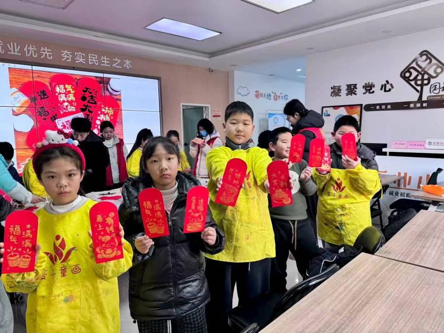 指尖拓印非遗韵 童心巧绘马年福——中牟新区广惠街街道开展幼儿非遗手工红包制作活动