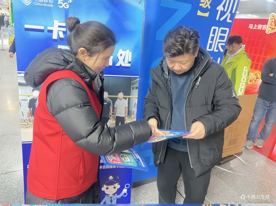郑州移动志愿者身着红马甲,如冬日暖阳穿梭其中,他们结合近期冒充客服诈骗的真实案例,向过往行人讲解反诈知识,剖析诈骗手段、拆解作案套路,直观传递防范要点,传递新春祝福与关怀。