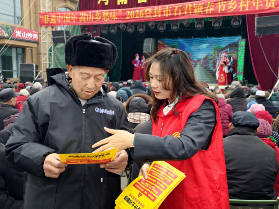 “大爷,要是有人找您借手机,您可别让它离开自己的视线范围。骗子会借着打电话的由头,盗取您手机卡再去骗别人。”热闹的登封乡村大集年货节,锣鼓铿锵、豫剧精彩,处处喜庆。郑州移动志愿者热情地向乡亲们发放反诈资料,结合乡村实际,用方言土语讲解“神医消灾”“保健品诈骗”等常见手段。