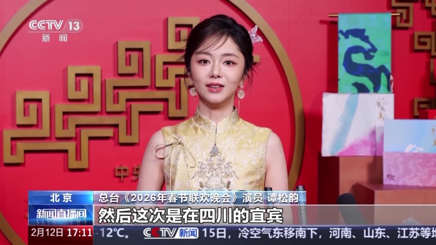总台《2026年春节联欢晚会》演员谭松韵:我们在四川宜宾分会场,和老乡在一起有一种喜气洋洋、国泰民安的感觉。