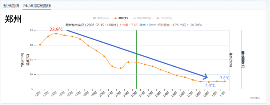 伴随大风而来的还有“断崖式”降温。昨天的“春天体验卡”还意犹未尽,今天冷空气就一把拽回了冬天。以郑州为例,从昨天14时的23.9℃降至今天09时的7.4℃,不到1天的时间降温幅度达16.5℃,堪称换季!