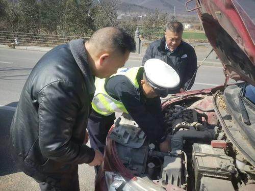 2月18日中午,少林景区车流人流密集,交警大队三中队民警张竞舟、辅警常宇鹏、刘晓龙正在路面执勤,一名车主焦急求助,车辆突发故障无法行驶。民辅警立即上前,合力将故障车推至安全区域,仔细排查故障,并帮忙联系维修人员,快速消除道路安全隐患,保障了景区交通顺畅。