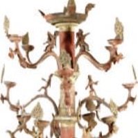为何叫“百花灯”?原来,灯柱各层的柿蒂饰件为可拆卸的油量调节装置,通过旋转不同角度控制灯芯浸油深度,匹配12个分层灯盏的点亮组合,可实现13级明暗调节。当灯渐次点燃时,火树银花,百卉盛开,故而得名。