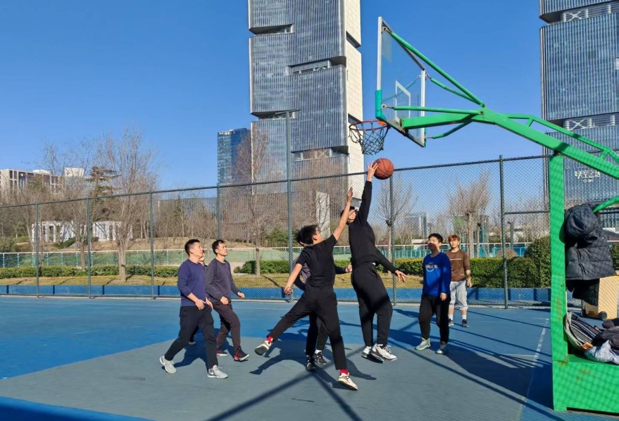刚刚结束比赛的徐勇满头大汗,却笑容灿烂:“我们几个是高中同学,也是当年学校篮球队的‘老搭档’,毕业后各奔东西,借着郑东新区市民体育公园春节期间免费开放,大家又重聚球场再战一场,重温青春。”