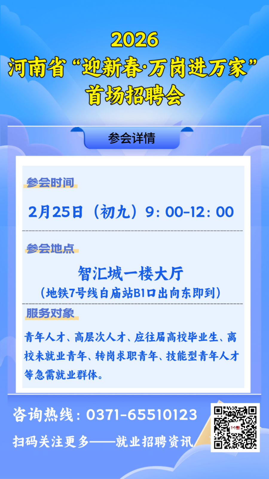 招聘会时间:2月25日(初九)9:00-12:00
