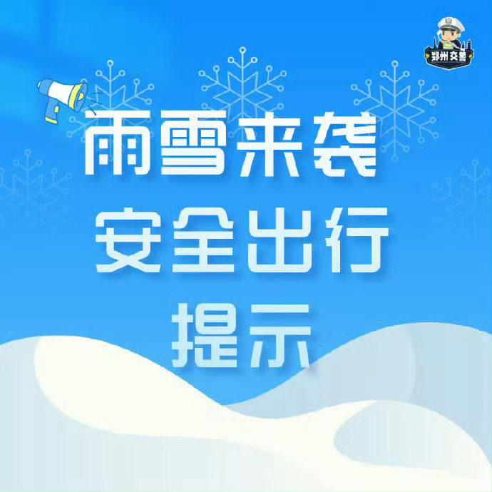 雨雪天气路滑,风险加大!请机动车减速、非机动车稳行、行人留心,安全至上,谨慎出行。