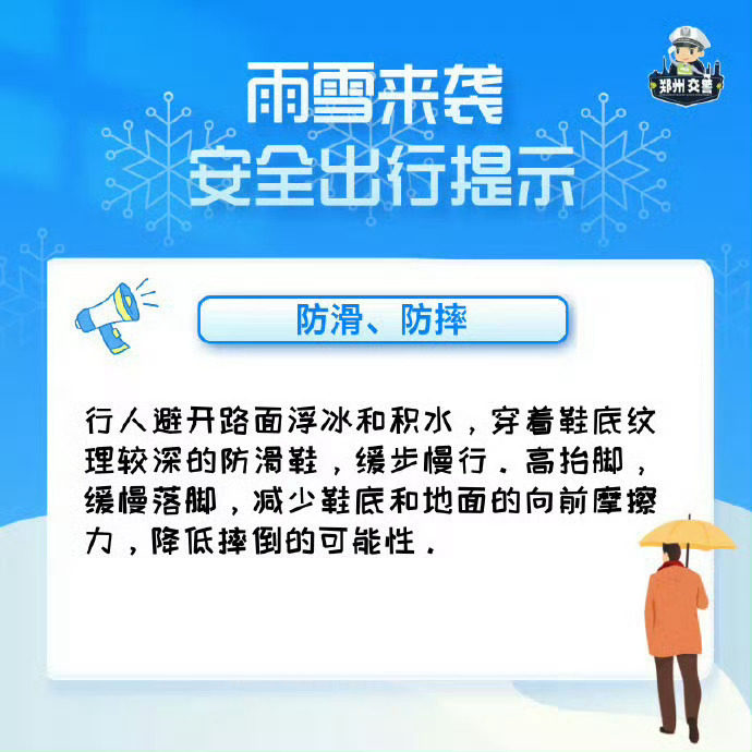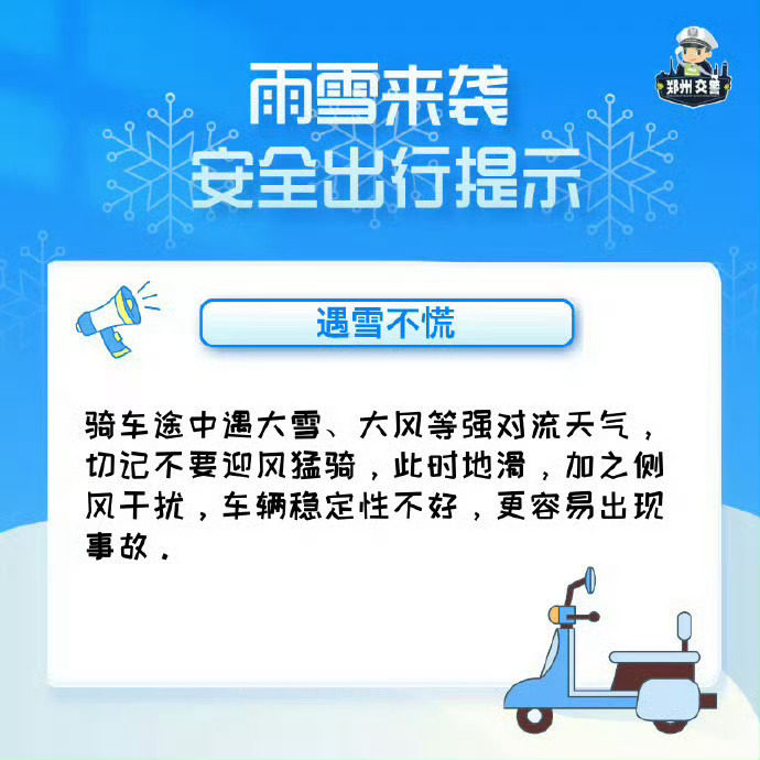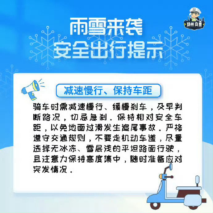 ✅ 非机动车:减速缓行,佩戴头盔,不猛拐急刹,避开结冰路面;