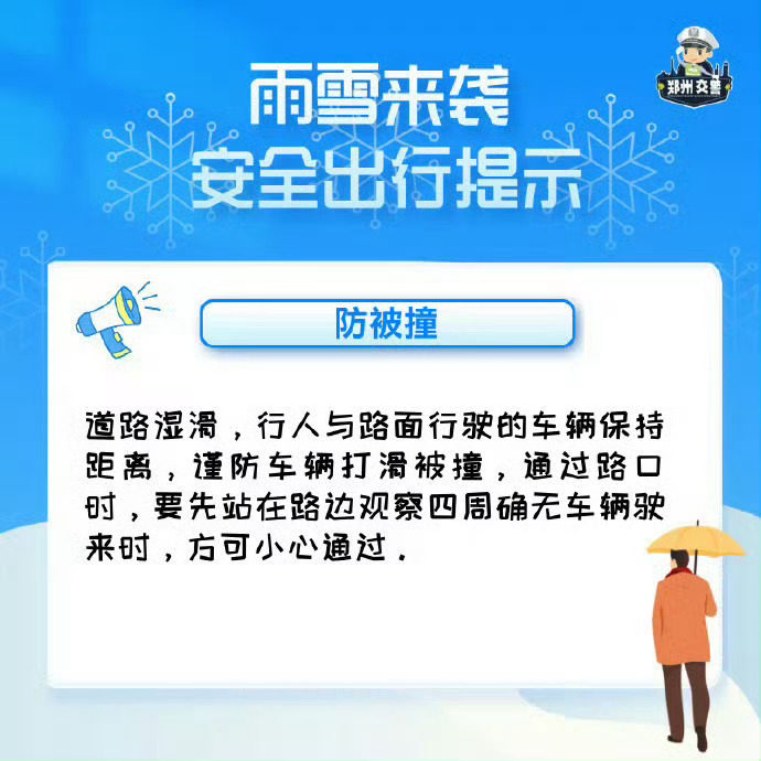 ✅ 行人:穿防滑鞋,走人行道,远离盲区,过马路仔细观察