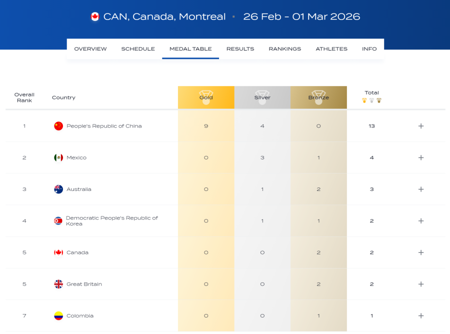 至此,本站比赛中国跳水梦之队以9金4银的战绩完美收官,金牌榜、奖牌榜均列首位。