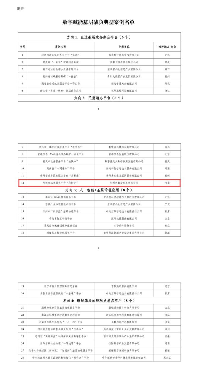 3月2日,记者从郑州市行政审批和政务信息管理局获悉,近日,工业和信息化部办公厅发布《关于公布数字赋能基层减负典型案例名单的通知》,经地方推荐、专家评审、网上公示等环节层层筛选,全国28个案例成功入选。郑州市综合服务平台“郑好办”凭借在数字赋能基层治理、减负增效方面的突出实践与亮眼表现,入选“民意速办平台”类典型案例,斩获国家级认可,不仅彰显了郑州数字政府建设的硬核实力,更成为国家数字减负政策落地见效的生动实践样本。