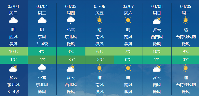 预计3月7日后,北方气温有所回升,9日有望回到正常或偏高的水平。但之后,还将有弱冷空气影响北方,届时气温还会小幅波动。