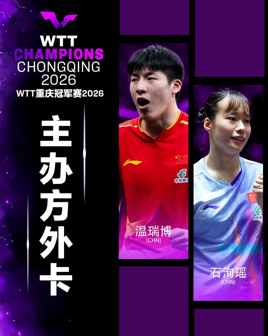 除了温瑞博获得本站WTT重庆冠军赛主办方男单外卡外,女单外卡同样归属于国乒选手,年轻选手石洵瑶获此殊荣;本站WTT男、女单打提名名单则分别归属于国乒选手黄友政和威尔士选手安娜·赫尔希。