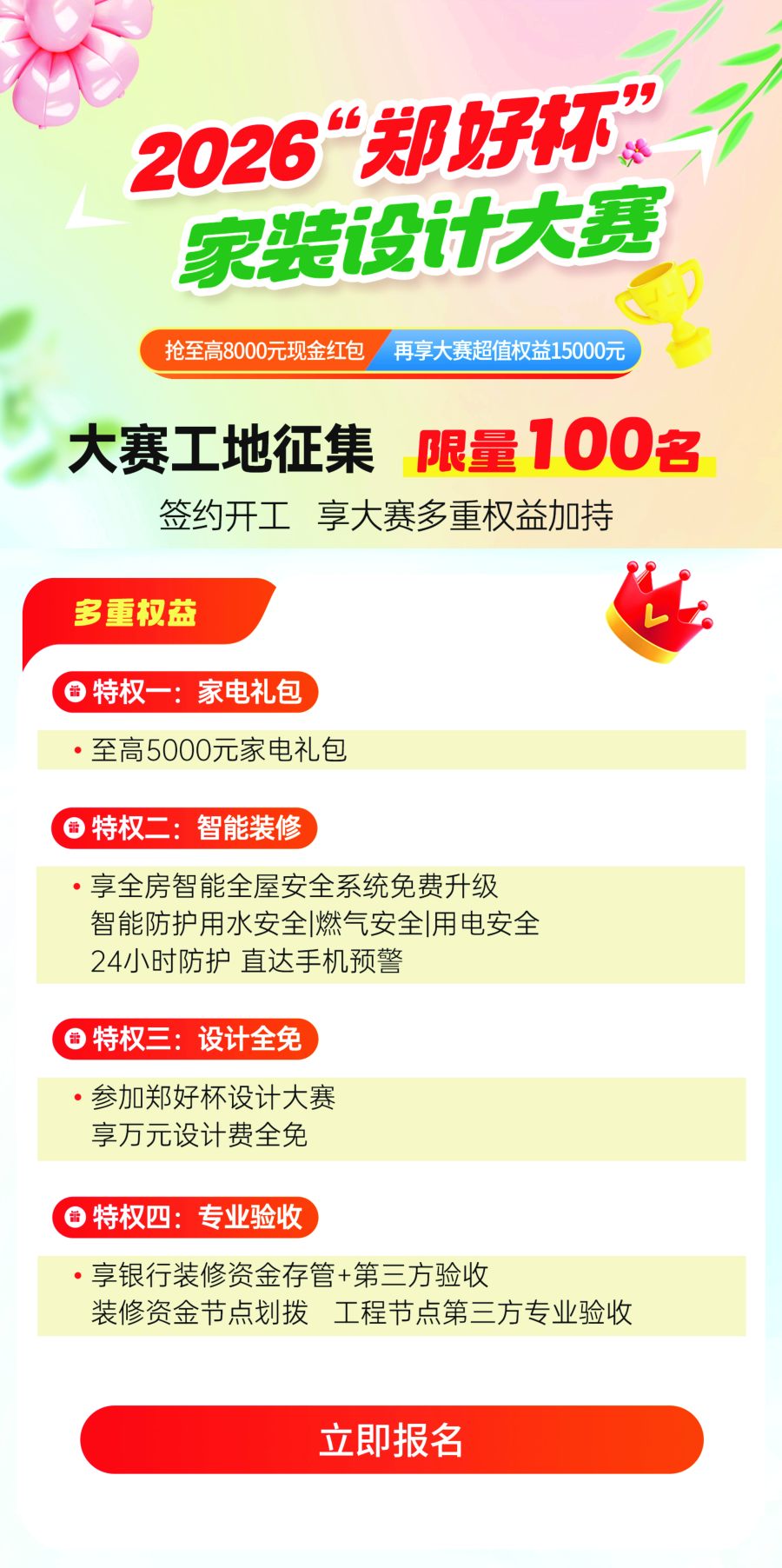 惊蛰启新,向美而行。本次“郑好杯”家装设计大赛的启幕,不仅为郑州市民带来了实实在在的家装福利,更以设计为核心、以智能为抓手、以安全为底线,推动郑州家装行业从“规范化”向“高品质、智能化”全面转型。