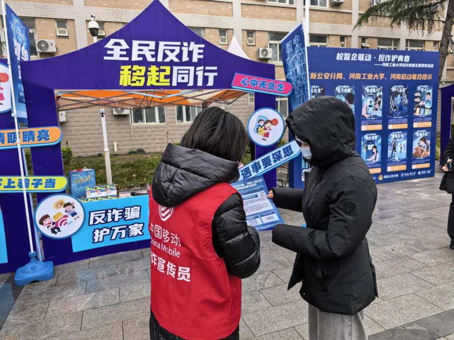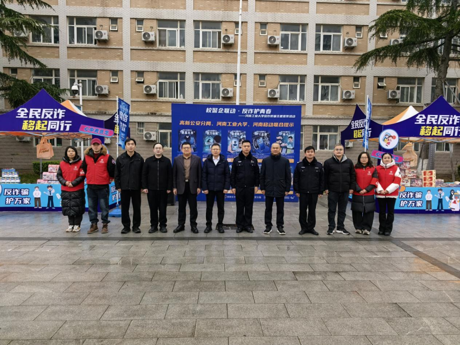 为筑牢校园反诈安全防线,提升大学生反诈防骗意识与能力。在高校新春开学季到来之际,由中国移动河南公司郑州分公司、高新区公安分局、河南工业大学联合开展的“反诈护青春 平安伴校园”反诈宣传活动在这里举办,通过警校企联动、创新宣传形式等多种举措,将反诈知识送到学子身边,为新学期校园安全保驾护航。