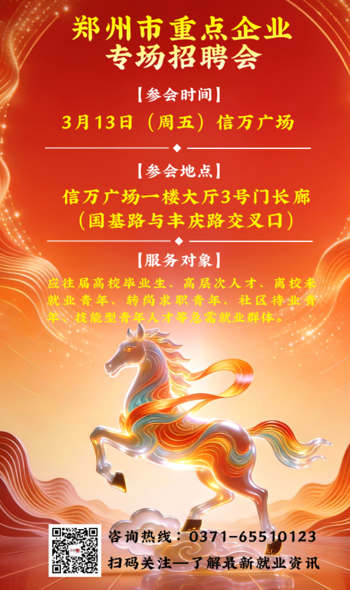 招聘会地点:郑州金水信万广场一楼长廊大厅3号门入场(郑州市金水区国基路与丰庆路交叉口)