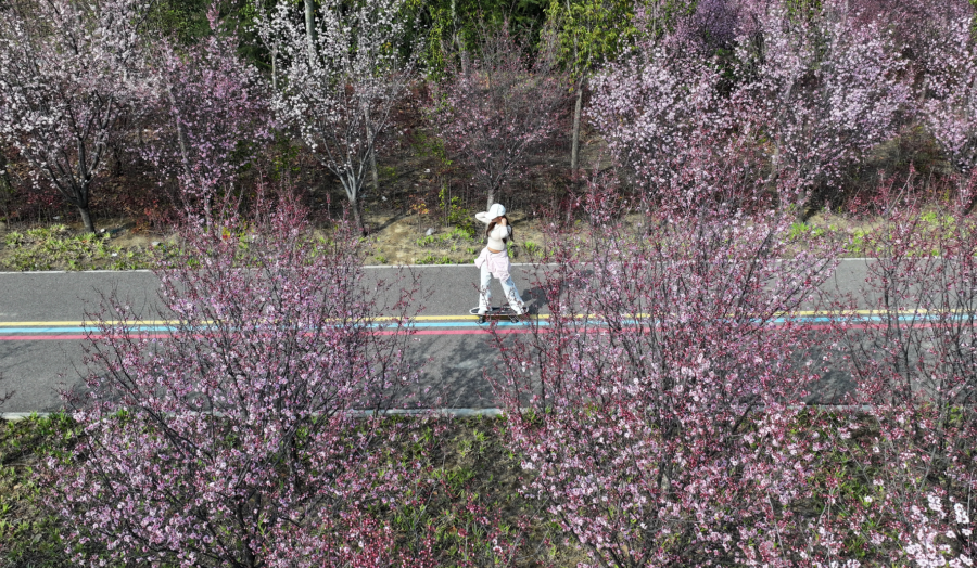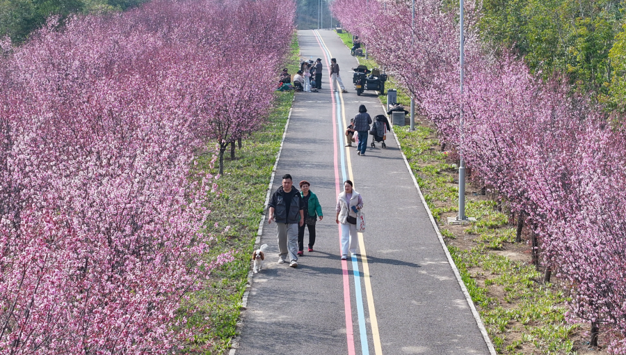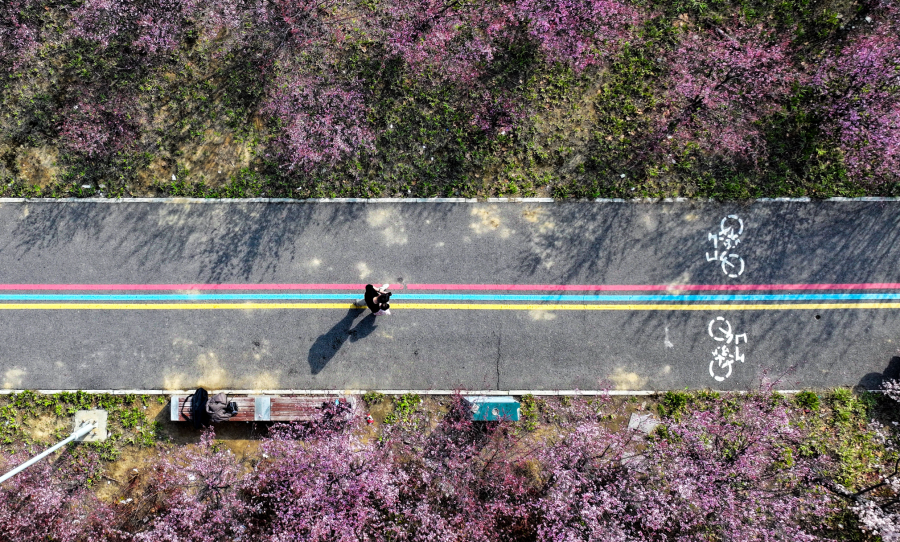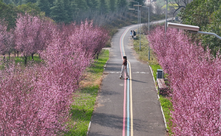 3月11日,高新区陇海铁路附近的一条步道成了市民的热门打卡点,这条路两旁,延绵数百米的美人梅进入盛花期,成了最美的花路。地址:郑州高新区民益北街铁路北侧绿化公园 。