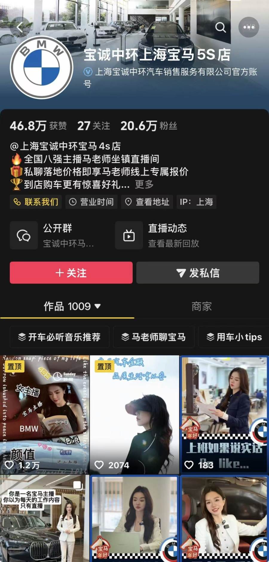记者注意到,根据博主提供的截图信息,这名发表争议言论的主播,疑似是上海宝诚中环宝马5S店的员工。